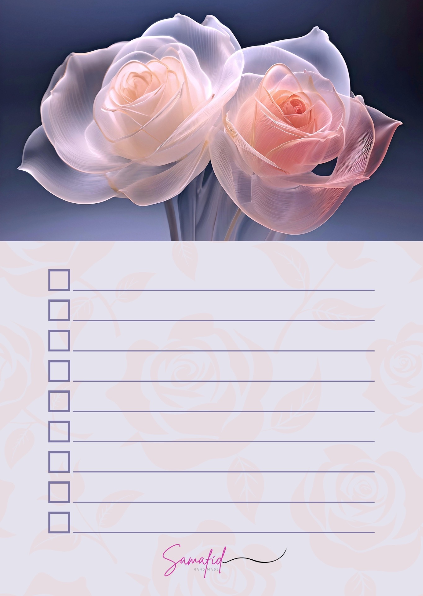 Bloček Růže je ručně vyráběný, precizní, magnetický bloček.  Na zadní straně má bloček 2 magnety. Lze ho tak umístit např. na lednici či magnetickou tabuli.  Bloček je dodáván v krásném balení, vždy s milým dárečkem uvnitř. Bloček obsahuje 30 listů. Možnost varianty velikosti   A5 - 150x210 mm A6 - 105x148 mm