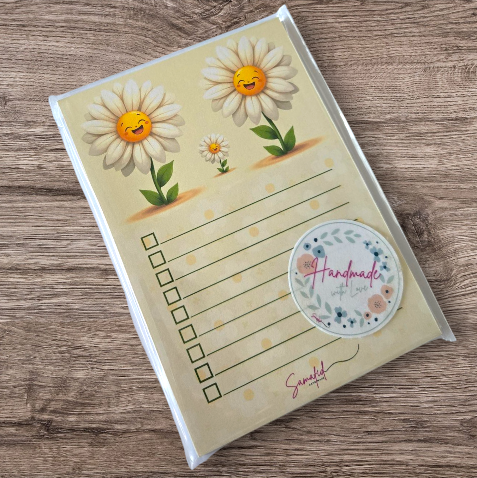 Bloček Kopretiny je ručně vyráběný, precizní, magnetický bloček.  Na zadní straně má bloček 2 magnety. Lze ho tak umístit např. na lednici či magnetickou tabuli.  Bloček je dodáván v krásném balení, vždy s milým dárečkem uvnitř. Bloček obsahuje 30 listů. Možnost varianty velikosti A5 - 150x210 mm A6 - 105x148 mm