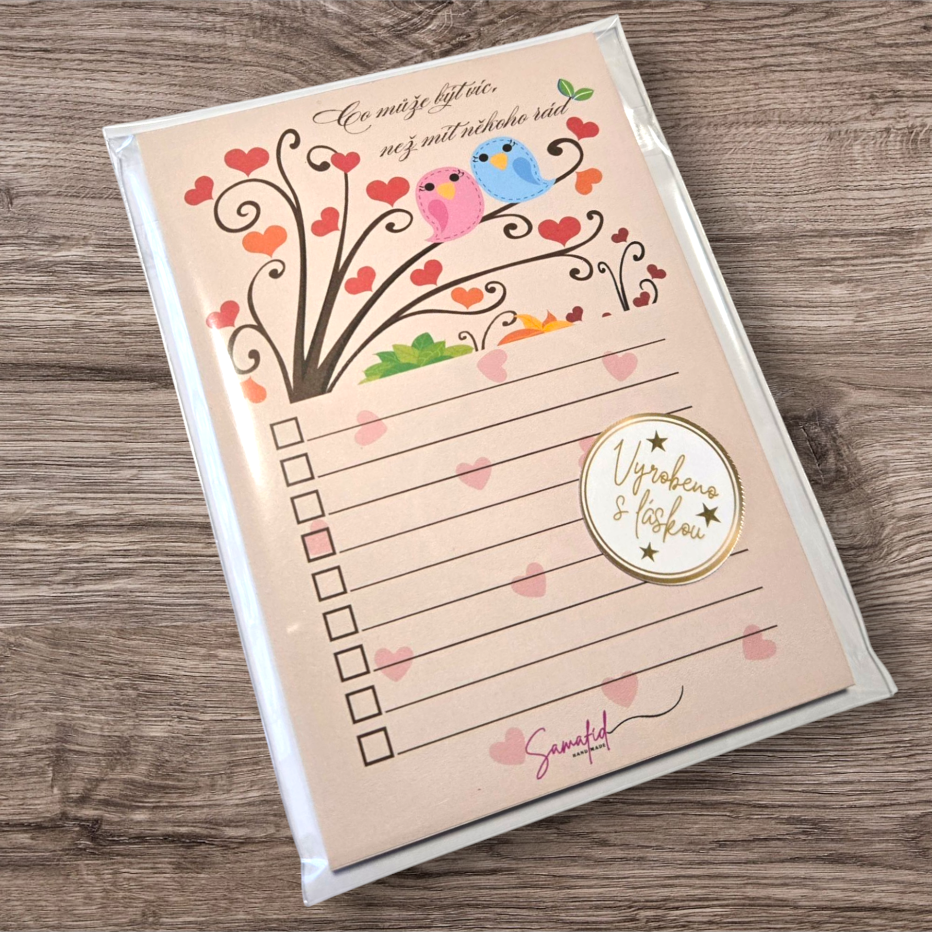 Bloček Zamilované sovičky je ručně vyráběný, precizní, magnetický bloček.  Na zadní straně má bloček 2 magnety. Lze ho tak umístit např. na lednici či magnetickou tabuli.  Bloček je dodáván v krásném balení, vždy s milým dárečkem uvnitř. Bloček obsahuje 30 listů. Možnost varianty velikosti A5 - 150x210 mm A6 - 105x148 mm